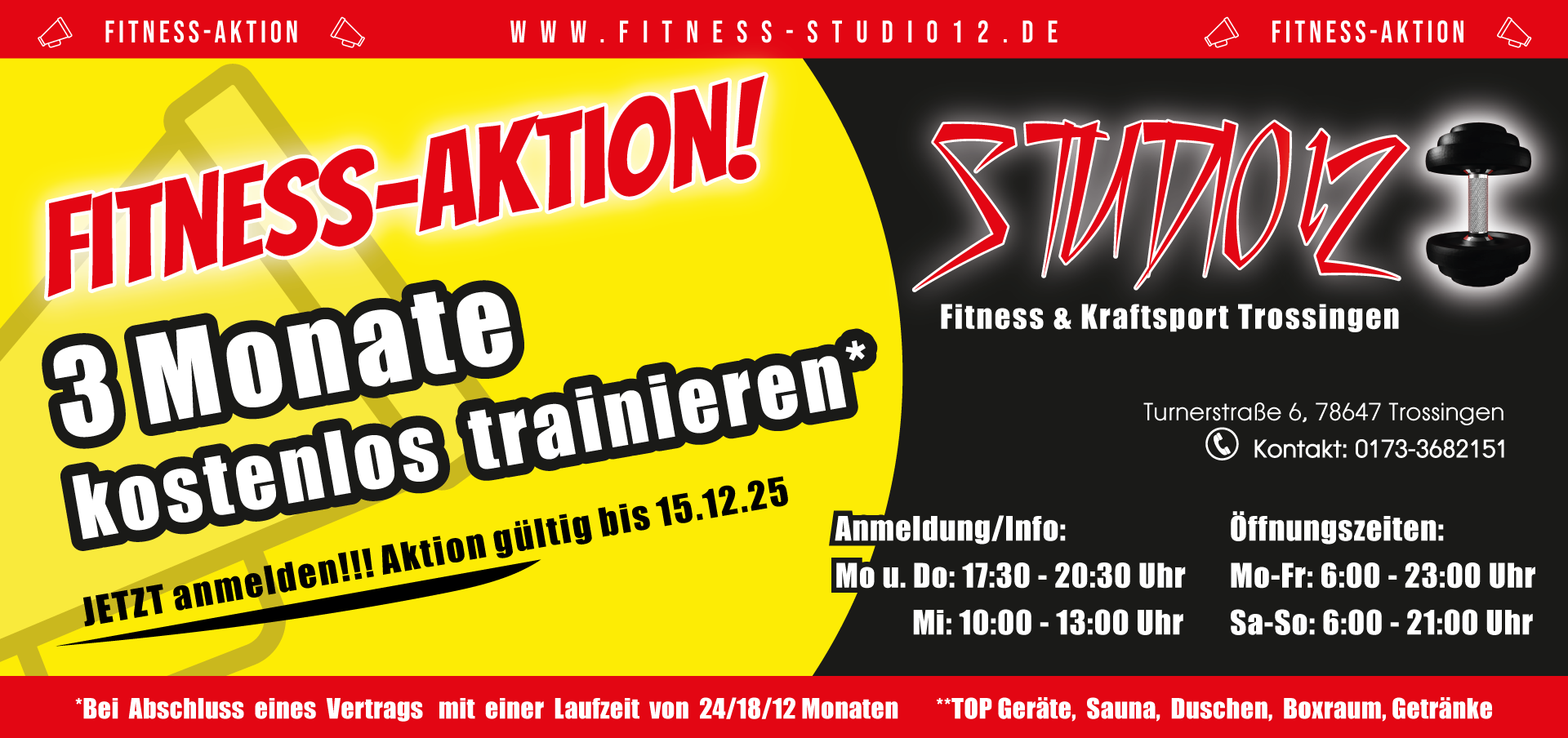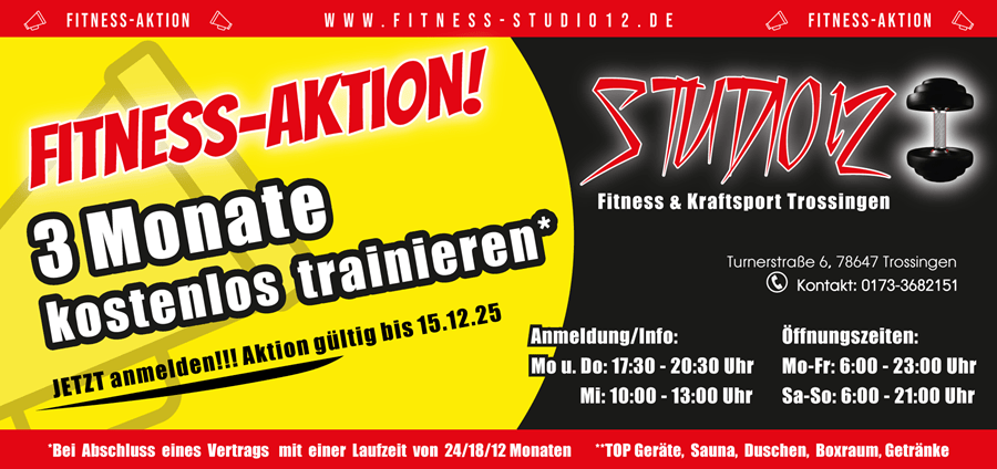 auch ohne Mitgliedschaft möglich! – Trotzdem volle Studionutzung während den 8-Wochen.